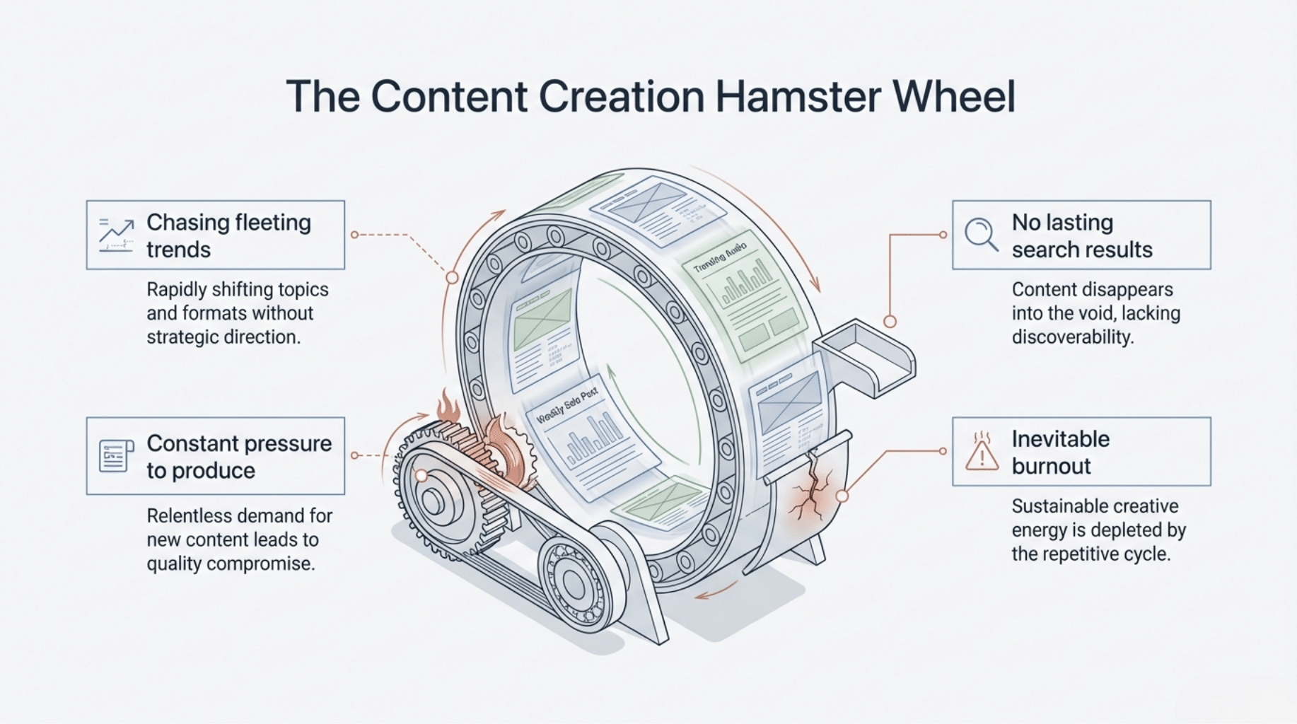 Creating content for your small business can often feel like a hamster wheel that never stops spinning. Between social posts, blogs, and keeping up with trends, the pressure to constantly produce can lead to burnout. And when your efforts don’t show results in search engines, the frustration only grows.