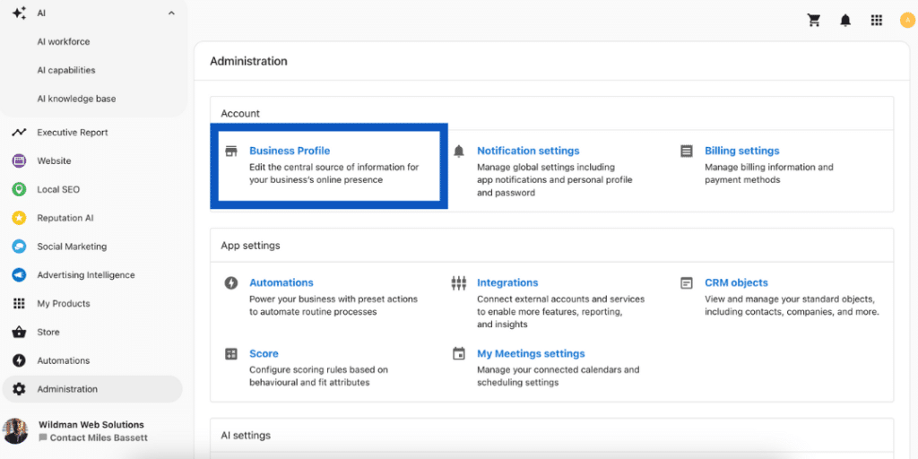 Inside Administration, click Business Profile. This is where you’ll add important information about your business.