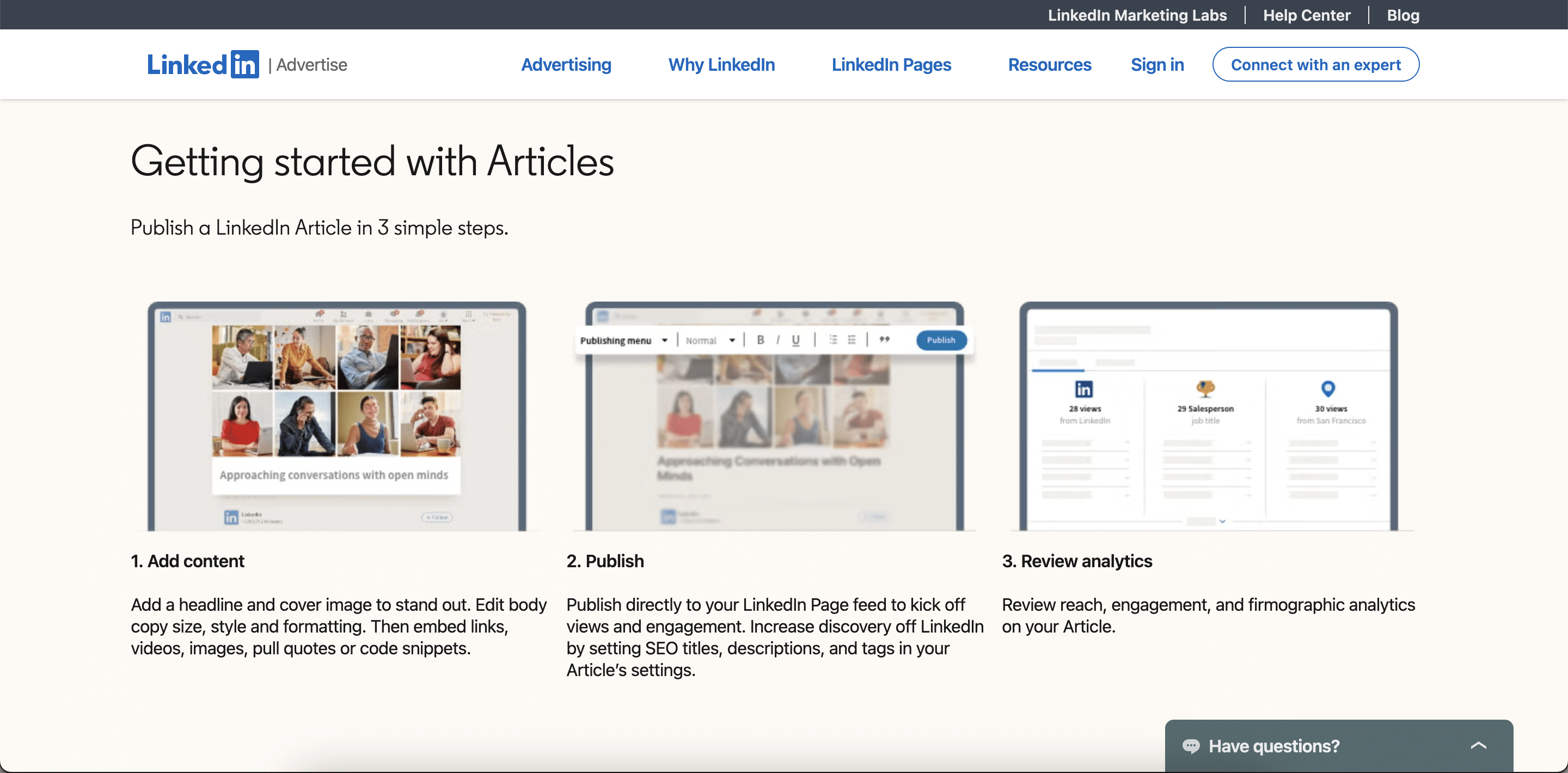 For most small businesses, trust building will get you farther than a flashy ad. Decision-makers want confidence before they want cleverness. They’re looking for proof that you understand their challenges, speak their language, and can deliver consistent results. LinkedIn Articles create space for that trust to form by letting you share real insights, explain your thinking, and demonstrate expertise over time.
