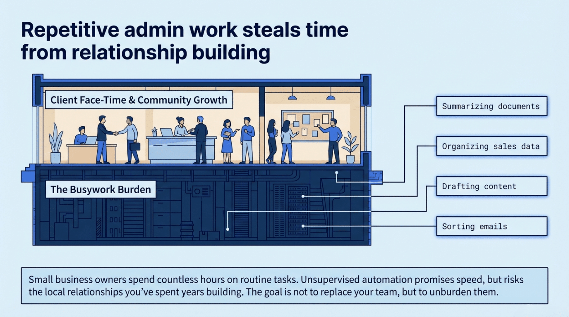 Small business automation with AI is changing how Kansas businesses operate. Owners often spend countless hours on repetitive tasks—summarizing documents, organizing data, drafting content, and sorting emails. AI can now handle much of this busywork, freeing up time for owners and their teams to focus on customers and business growth. But like any tool, if it’s not implemented carefully, automation can backfire and harm the relationships you’ve spent years building.